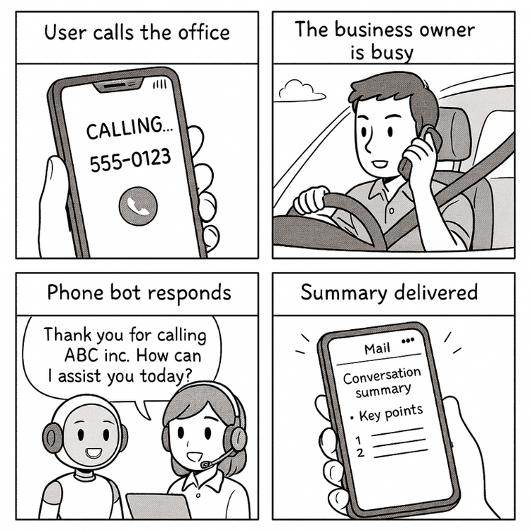 Gérez les appels entrants 24h/24 et 7j/7 et recevez des résumés détaillés des conversations par e-mail peu après chaque appel.